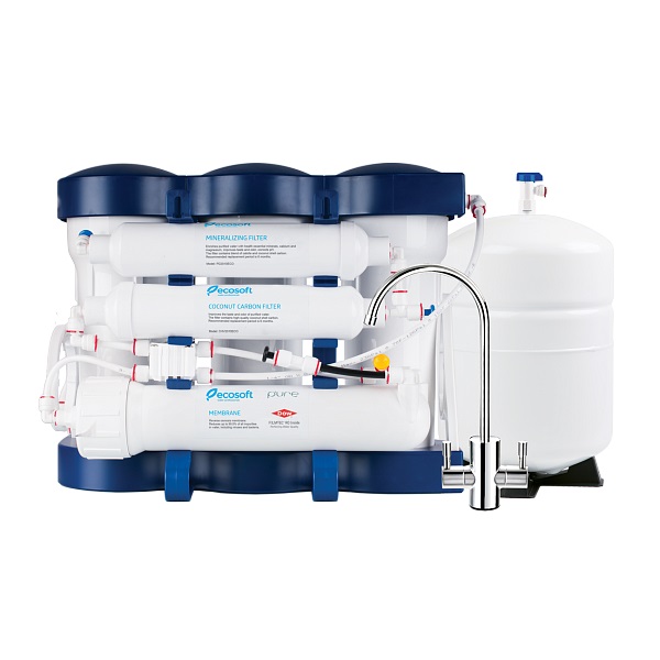 Ecosoft 6-75M это фильтр для воды с системой обратного осмоса, имеющий 6 ступеней очистки воды, включащие в себя два постфильтра для придания воде приятного вкуса и полезных для здоровья качеств. Первая, вторая и третья ступень очистки это механические фильтры из вспененого полипропилена 5 мкм (для песка, ила, ), активированного угля (против хлора, фенола и примесей металлов), вспененного полипропилена с порами 1 мкм (финальная механическая очистка). Далее идёт мембрана обратного осмоса DOW Filmtec 75 GPD (срок службы до 1,5 лет) для тонкой очистки воды до состояния близкого к "химически чистому". После чего вода поступает в минерализатор , который обеспечивает оптимальное содержание микроэлементов для вашего здоровья. Эта вода поступает в накопительный бак и после открытия крана подаётся через угольный фильтр из кокосовой стружки (для восстановления вкусовых качеств воды) вам. Далее следует минерализатор, насыщающий воду полезными микроэлементами до уровня столовой воды.