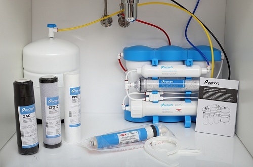 Ecosoft 6-75MAC (P’URE AQUACALCIUM) это фильтр для воды с системой обратного осмоса, имеющий 6 ступеней очистки воды, включащие в себя два постфильтра для придания воде приятного вкуса и полезных для здоровья качеств. Первая, вторая и третья ступень очистки это механические фильтры из вспененого полипропилена 5 мкм (для песка, ила, ), активированного угля (против хлора, фенола и примесей металлов), вспененного полипропилена с порами 1 мкм (финальная механическая очистка). Далее идёт мембрана обратного осмоса DOW Filmtec 75 GPD (срок службы до 1,5 лет) для тонкой очистки воды до состояния близкого к "химически чистому". После чего вода поступает в минерализатор AquaCalcium, который обеспечивает оптимальное содержание кальция в воде (55‒65 мг/л). Эта вода поступает в накопительный бак и после открытия крана подаётся через угольный фильтр из кокосовой стружки (для восстановления вкусовых качеств воды) вам. Далее следует минерализатор, насыщающий воду полезными микроэлементами до уровня столовой воды.