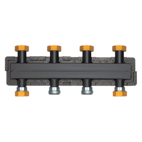 С перепуском - коллектор, имеющий специальную перфорацию между подающей и обратной линиями для частичного перепуска теплоносителя. Предназначен для непосредственного подключения источника тепла со встроенным насосом (но без встроенного перепускного клапана). -
