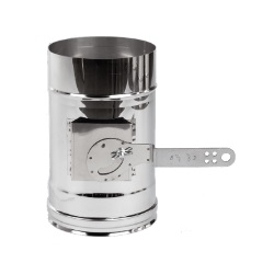 Регулятор тяги нержавейка в нержавейке для двустенного дымохода Версия Люкс является важным элементом дымохода. Он применяется в качестве регулирующей заслонки по ходу дыма, которая стабилизирует тягу в дымоходе, ограничивает избыточное понижение давление (тяги). Регуляторы тяги и элементы дымоходов из нержавеющей стали изготавливаются толщиной 0,6 мм, 0,8 мм, 1 мм, в основном исполнении с ручкой, в исполнении 1 с прутком, который вращается, в исполнении 2 с прутком, движущимся в продольном направлении.