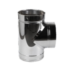 Тройник дымоходный из нержавеющей стали Версия Люкс предназначен для отвода отходящих газов в дымоход и обеспечивает возможность чистки и обслуживания дымоходной трубы с отсеканием конденсата. Для исключения попадания конденсата в тройник установлен капельник. Как правило, используется в комплекте с ревизией либо лейкой. Соединяется между собой и с другими элементами системы дымохода без дополнительного крепления: "труба в трубу".